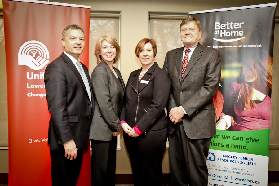 Minister of State for Seniors Ralph Sultan, Minister (and Langley MLA) Mary Polak, and United Way of the Lower Mainland CEO Michael McKnight attended a launch event in Langley to announce new Better at Home sites.